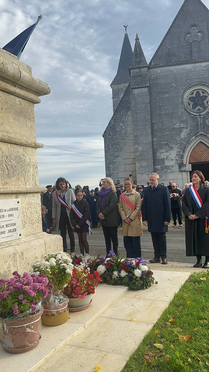 Les commémorations du 11 novembre se sont poursuivies à Mainxe-Gondeville et Châteaubernard afin de rendre hommage à celles et ceux qui ont donné leur vie pour la France. Une pensée particulière a été adressée aux victimes des conflits actuels, ainsi qu’à nos forces armées engagées pour assurer la protection de la Nation. Ce devoir de mémoire demeure essentiel pour transmettre aux jeunes générations les valeurs républicaines et l’importance de la paix.