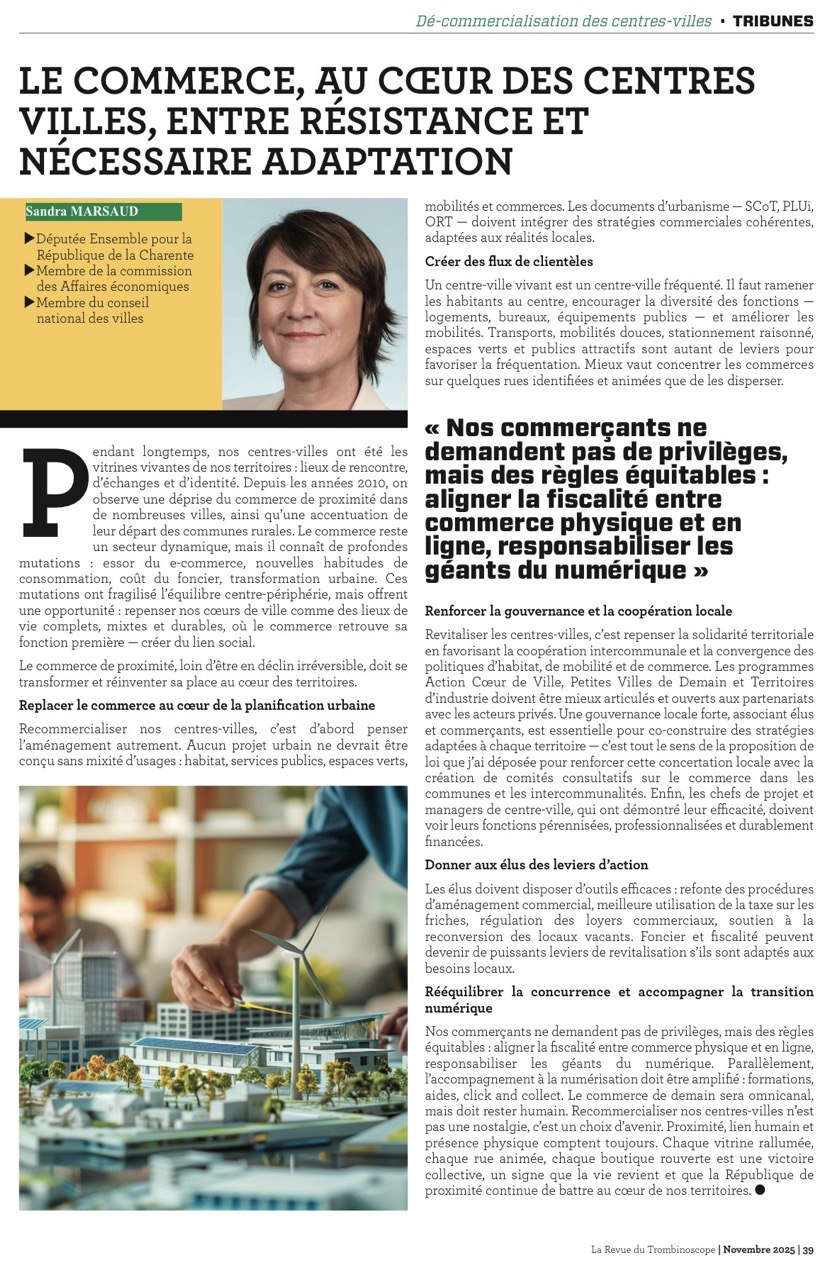 Repenser nos centres-villes, c’est repenser la vie dans nos territoires. Dans cette tribune parue dans Le Trombinoscope, je partage ma vision pour remettre le commerce au cœur de la planification urbaine et renforcer l’attractivité de nos cœurs de ville: